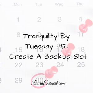 One of the things I struggle with during my planning is that plans never go according to plan. Something changes and all of a sudden I am running away from the huge rock ala Indiana Jones. Rule #5 from Tranquility By Tuesday* tells me I need to create a backup slot.