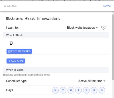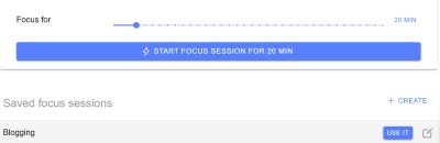 Focus mode is blocking for a short period of time. You can set up the apps and/or websites you need to work, and then block everything else for a chosen time period. You can even state a goal of what you are working on – and if you get distracted, the app will remind you.