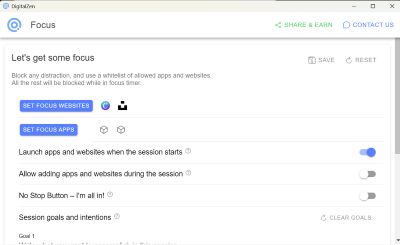 There are two ways to use DigitalZen: blocking and focus. Both options allow you to save your configuration.