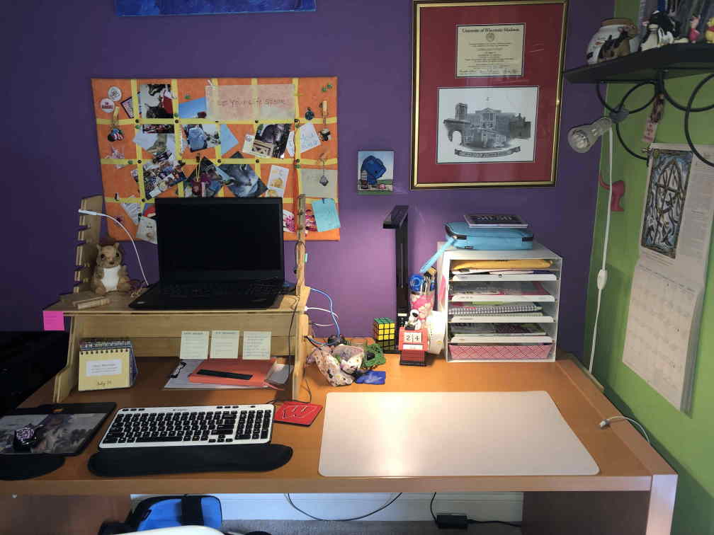 The notebook tray filled up first. I decided I would keep two “thinking” notebooks, or books that I use when I am problem-solving. One is letter sized, and one is statement sized. I also kept two sticky note pads in there: the 3×3 as well as the lined paper 4×6. Everything else was put in the common supply bins in our shared office.