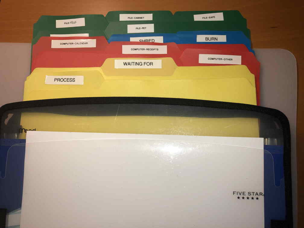 If it was trash or recycling, it went into the folder in my sorter. If it needed computer action or long-term filing, it went into the appropriate folder in my sorter.