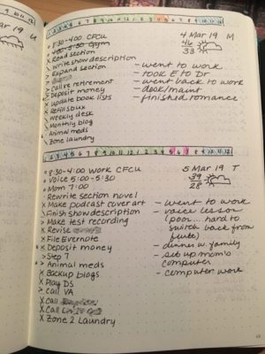 The bulk of my journal are my daily entries. Every night I sit down and write out the start of the next day. These include things on my calendar as well as the tasks.