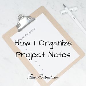 One of the most useful things I have learned to do over the course of my professional career is to figure out how to organize project notes. Not only does this allow me to tell you where the status of any piece of my work is at a given point, but it also allows me to revisit the items when questions arise after the work is completed.