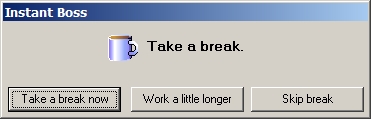 I went looking for a PC timer program to use at work. I already had a basic timer on my machine, but I wanted the ability to set intervals. I couldn’t use the traditional timer because I would disturb my co-workers. I stumbled across a great application called Instant Boss over at the Donation Coder forum. It did exactly what I was looking for.